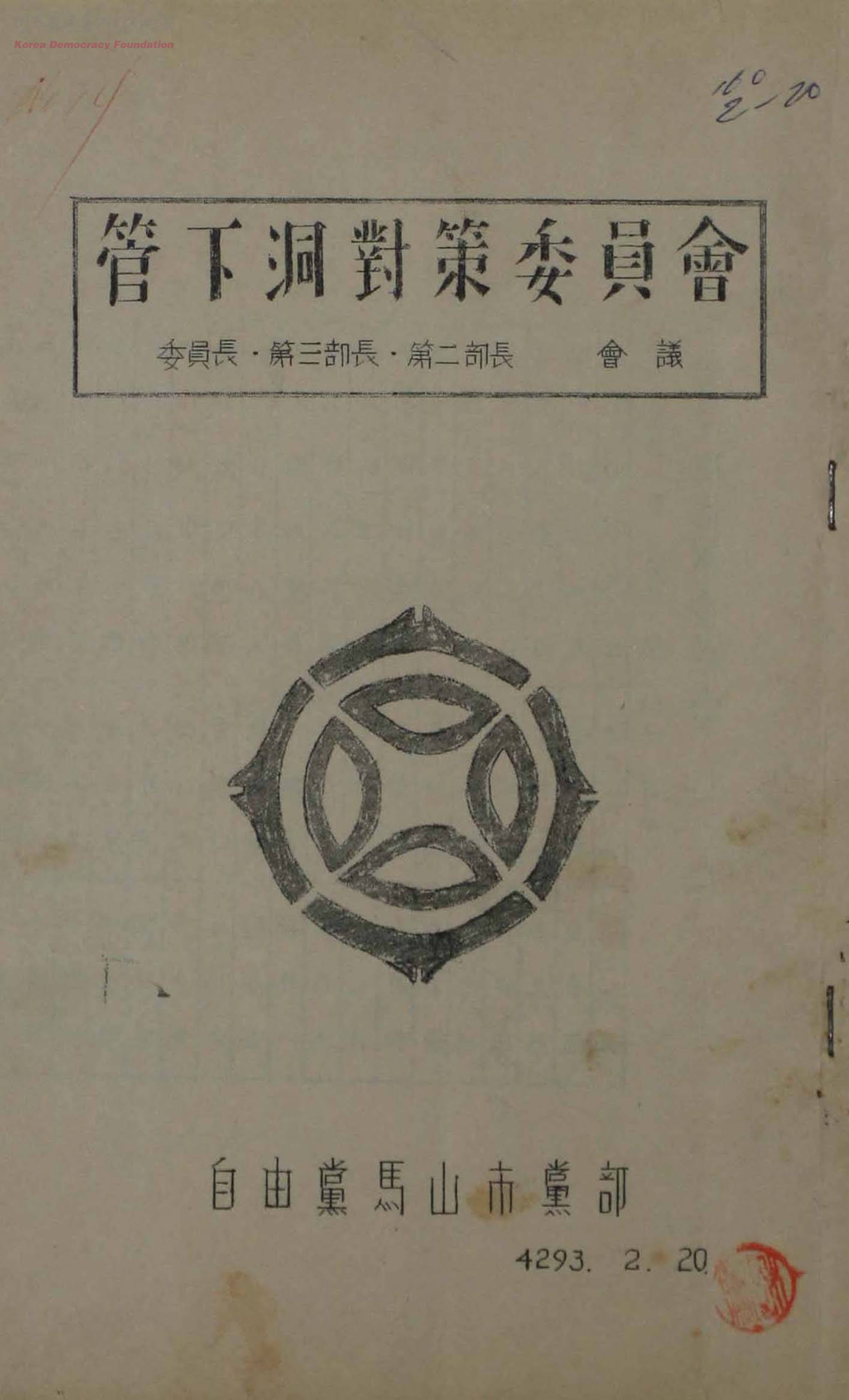 - * 3.15 부정선거를 앞두고 자유당 마산시당의 선거대책 상황을 담은 문건 위원장, 제3부장, 제2부장회의록 - 관하동 대책위원회 명단 - 긴급보고서제출일람표 ; 득표공작상황보고서, 각투표구별실태및 공작조서, 투표구내자연부락별 실태 등...
