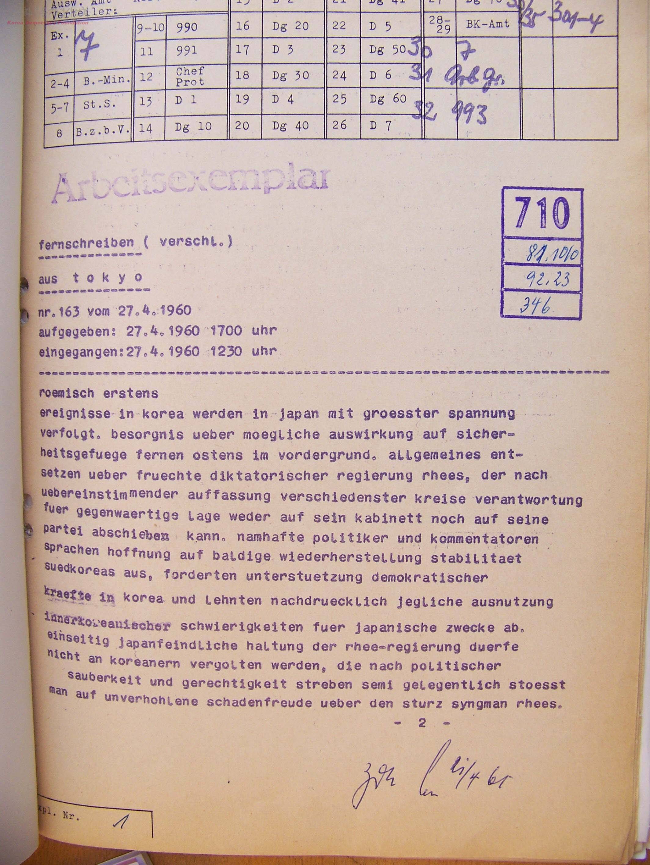 - 도쿄에서 보낸 통신 - 4.19와 관련한 일본의 관심