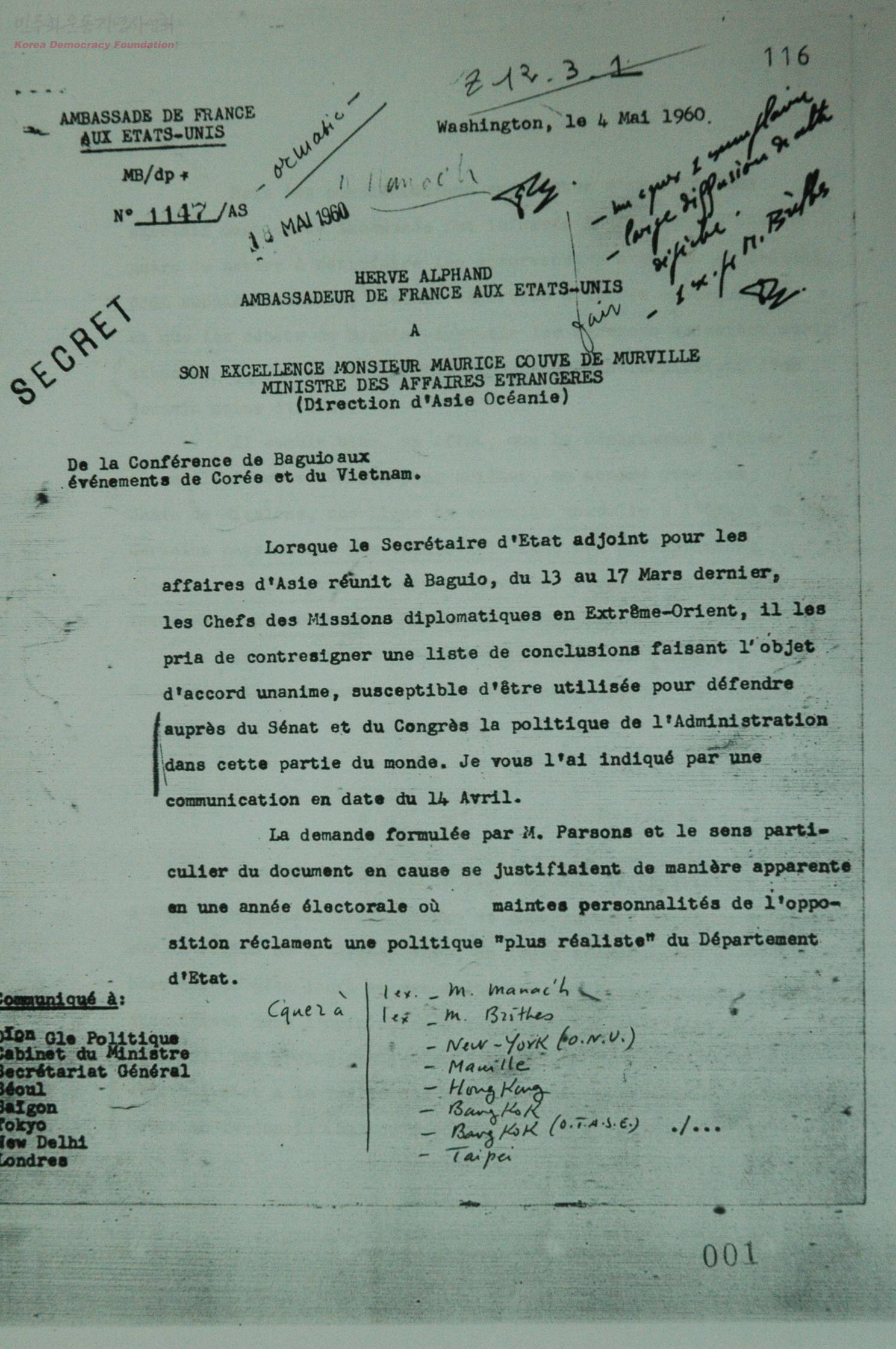 주미 프랑스 대사 알팡(H. Alphand)이 프랑스에 보낸 보고서
