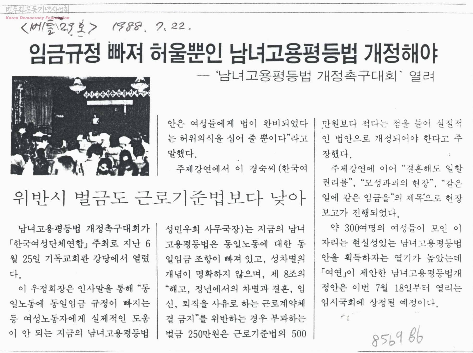 - 남녀고용평등법 개정촉구대회에 관한 내용