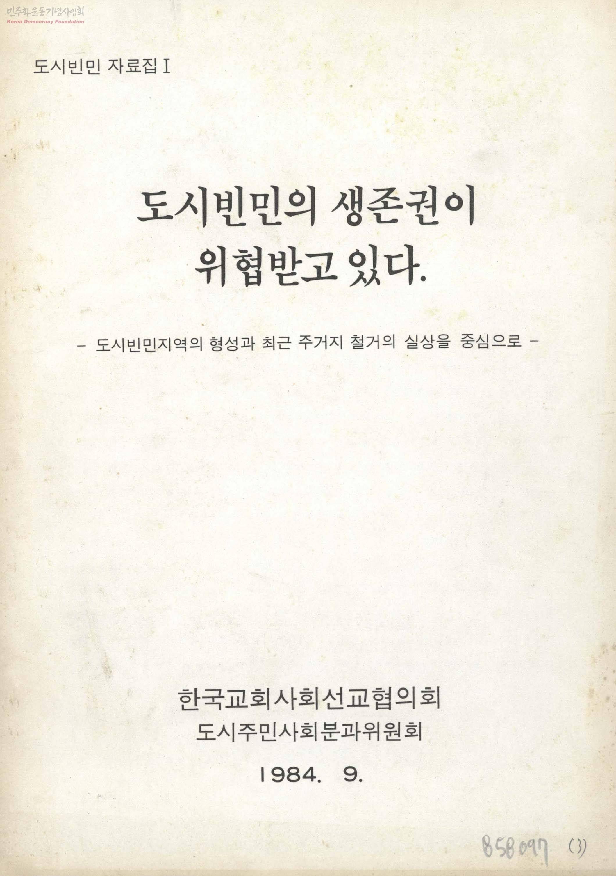 도시빈민 자료집Ⅰ:도시빈민의 생존권이 위협받고 있다-도시빈민지역의 형성과 최근 주거지 철거의 실상을 중심으로