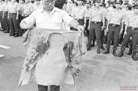 - 1976년 5월 13일 재미구국향군회의 남덕무 재무장관 방미 반대 집회 관련 내용 첨부 : 컬러 사진 4장