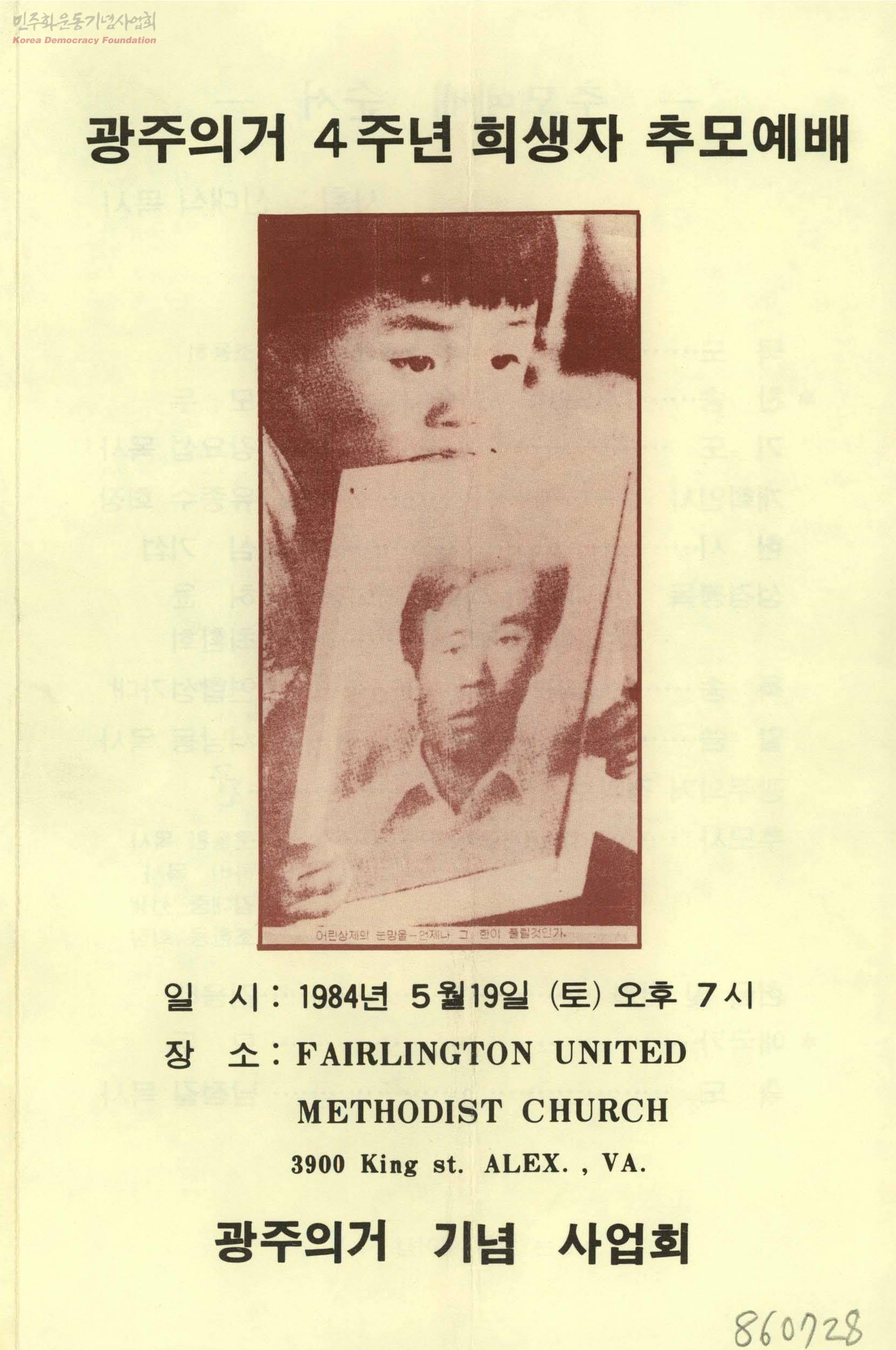 - 1984년 5.18 4주기 재미동포들의 희생자 추모 예배 관련 주보. 서남동 목사 설교