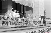- 국민대회를 방해하고 불법적 연행, 연금과 무차별한 최루탄 발사하는 정부 비판. 각성하여 국민적 합의를 배신한 호헌을 철폐하고 민주개헌에 동참하라.