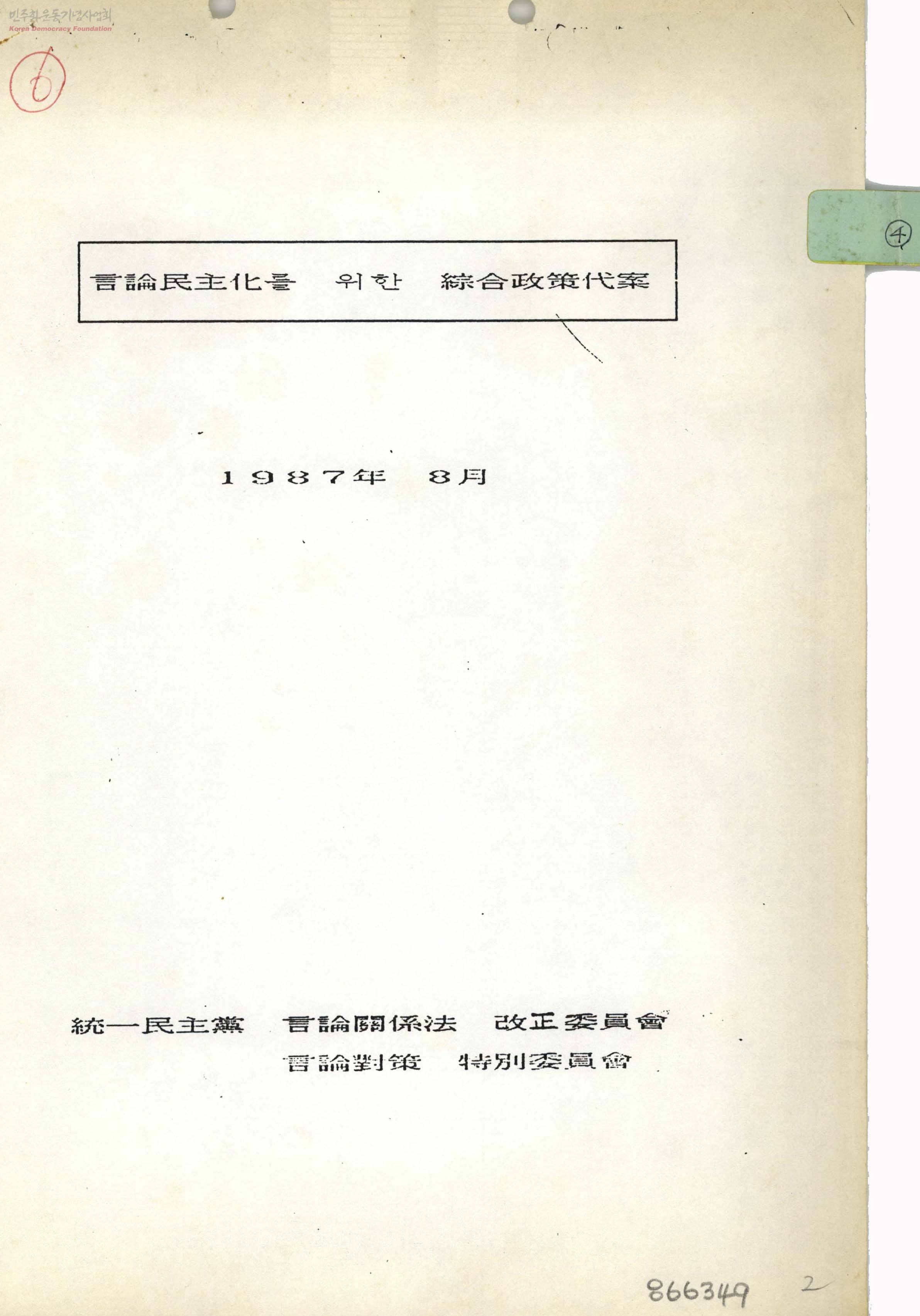 - 통일민주당 언론관계법개정위원회 언론대책특별위원회