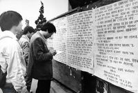 - 1.군사독재 물리치고 민주헌법 쟁취하자 2.장기집권 보장하는 군사독재헌법 철폐하자 3.삼인고문 용공조작 폭력정권 물러가라 등.