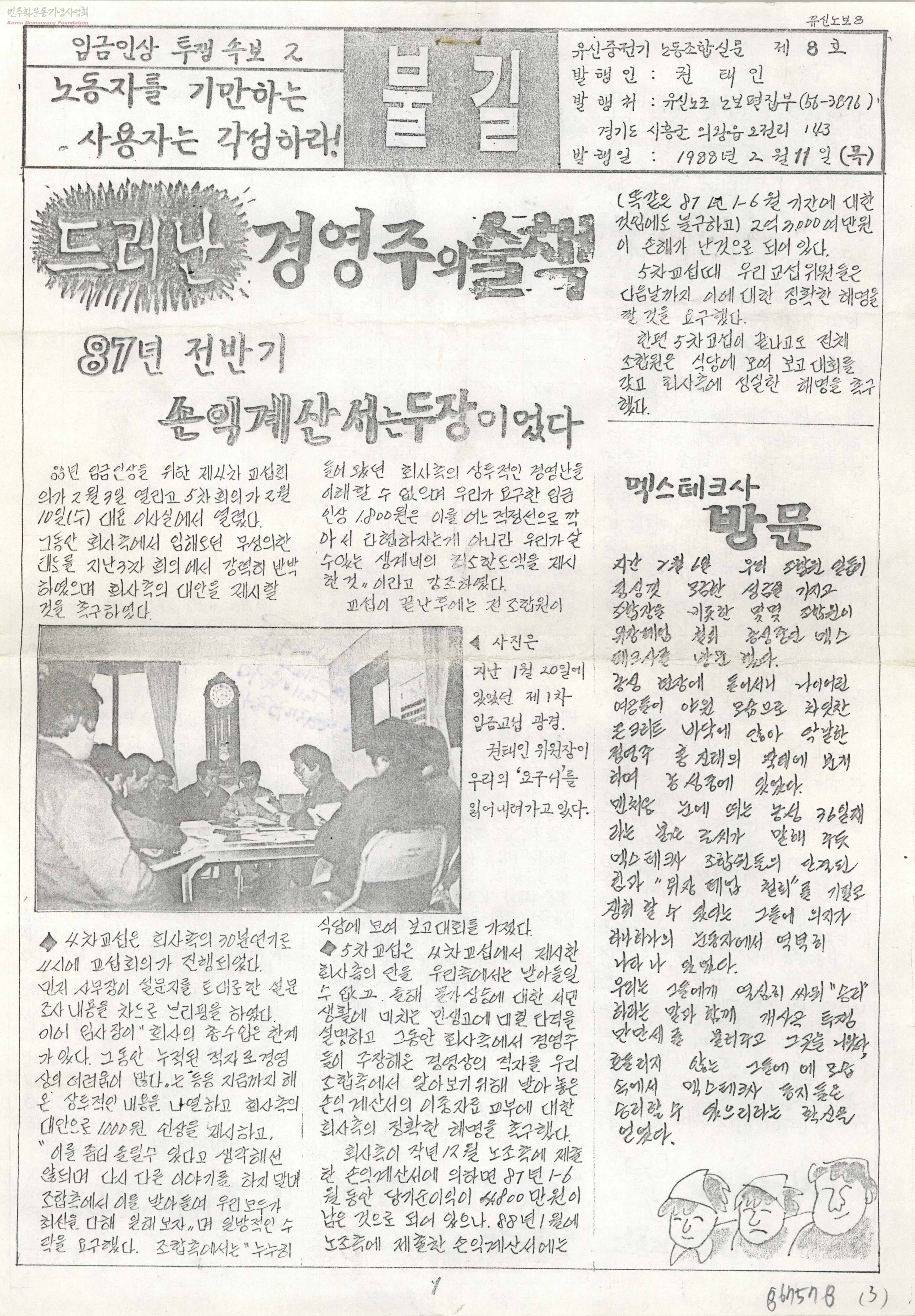 - - 드러난 경영주의 술책-87년 전반기 손익계산서는 두장이었다 - 멕스테크사 방문 - 주장: 중단자가 되지말자 등