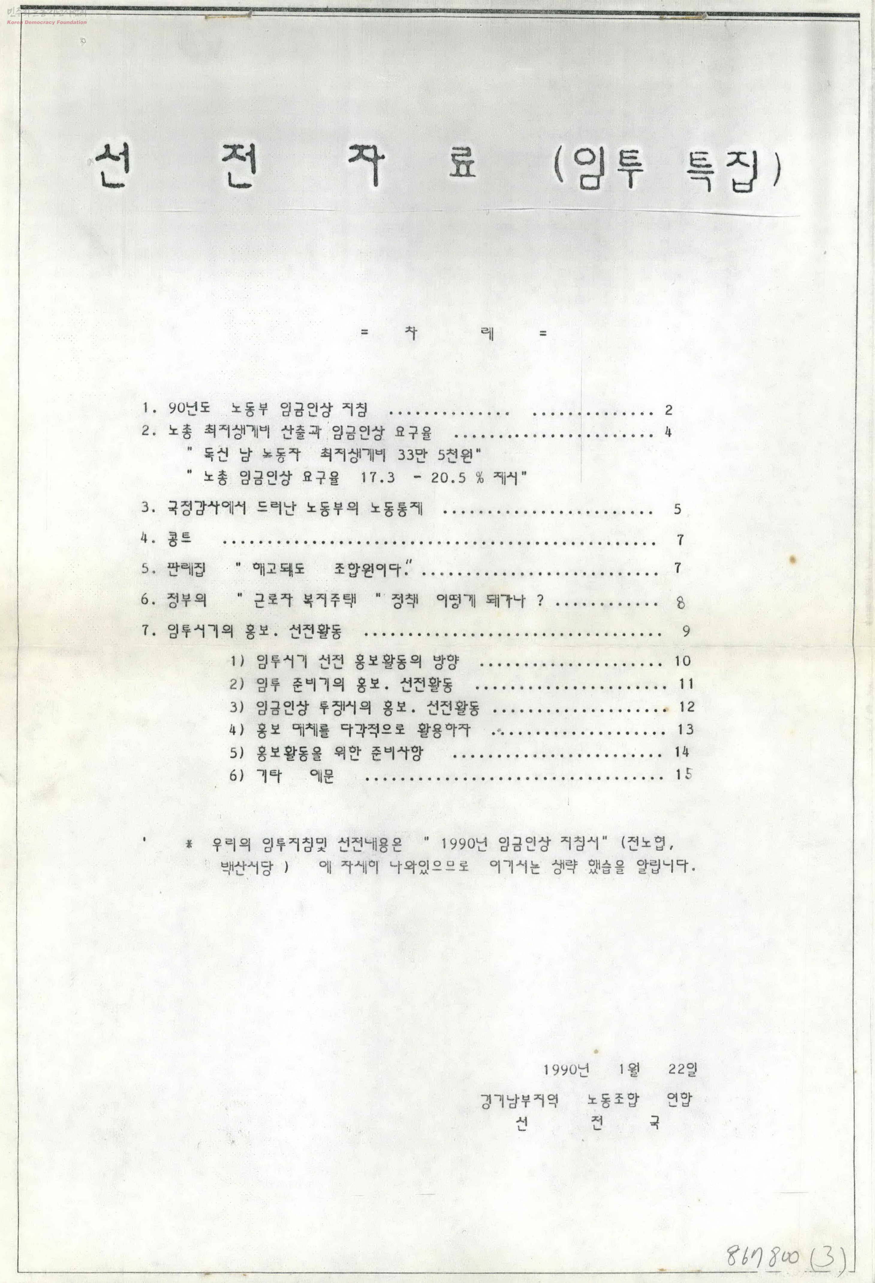- 1. 90년도 노동부 임금인상 지침 2. 노총 최저생계비 산출과 임금인상 요구율 등
