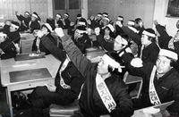 - 인간멸시 노동탄압 투쟁으로 박살내자 악덕재벌 럭키금성에 민주깃발 휘날리자 대동단결 대동투쟁 단체협약 완전쟁취 그 날은 오리라 승리의 그날은 투쟁, 투쟁!