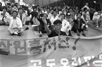 - 89년 2월 3일에 발표된 광주학살은폐조작음모를 분쇄하고 노태우 처단투쟁에 함께해달라고 호소하는 결의문.