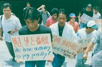 - 1500교사 쫓아내고 반민주야합 웬말인가 - 3당야합은 자신들의 기득권을 지키기 위한 야비한 음모입니다. - 지난 1년간의 땅값 상승액은 임금총액과 맞먹습니다. - 교육관계법등 각종악법들이 오히려 개악될 위기에 옿여있습니다. 등.
