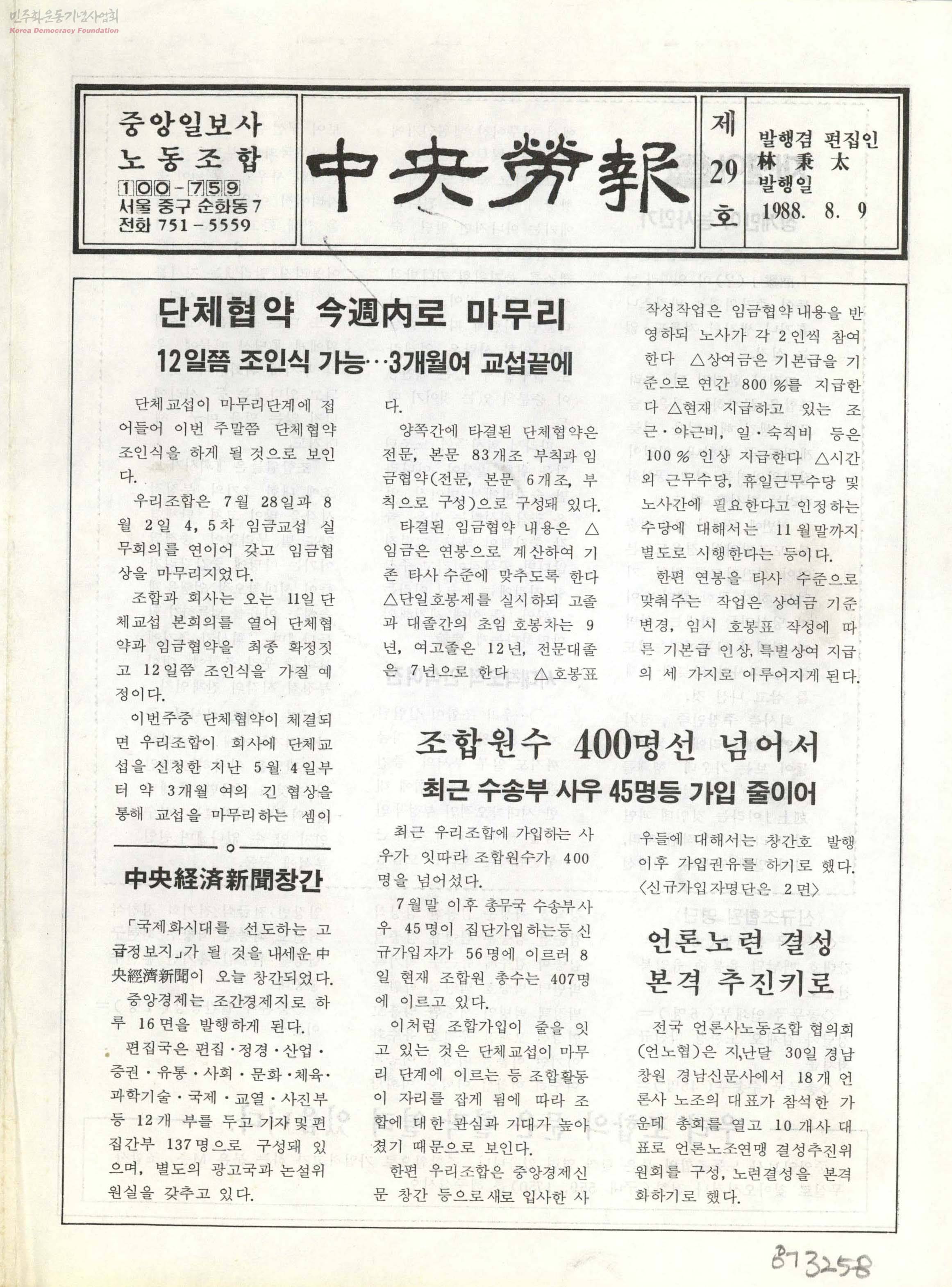 - 3개월간의 교섭끝에 단체협약이 마무리된다는 소식과 언론노련 결성등에 대한 내용