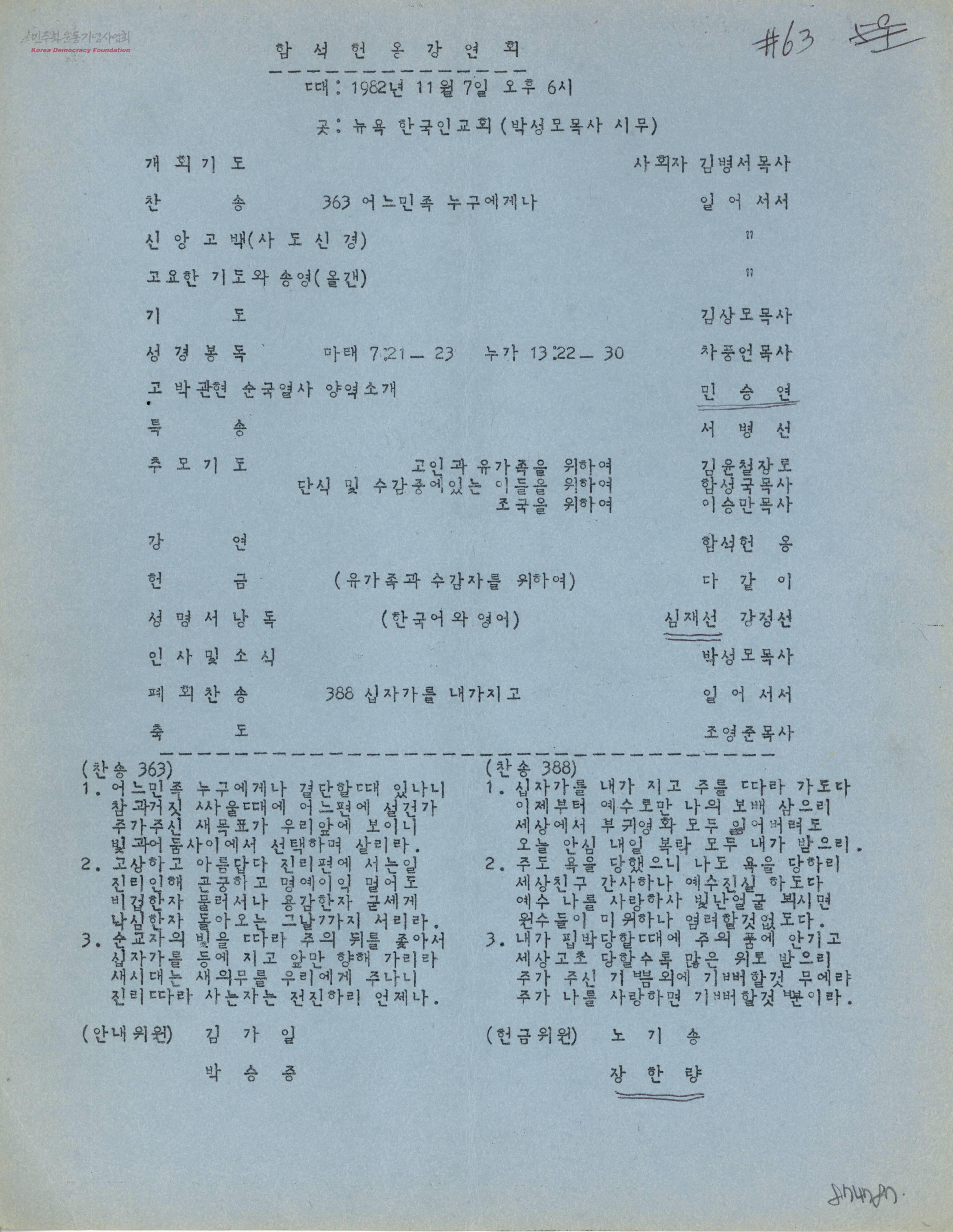 - 예배순서, 속임수의 공약, 함석헌옹 강연회 안내 등