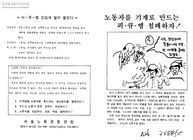 - 1991년 7월 9일, 7월 15일 불법파업관련 회사규정 위반자 징계조치 건으로 특별인사위원회 개최를 통보하고 있음. 징계사유와 명단이 첨부되어 있음.