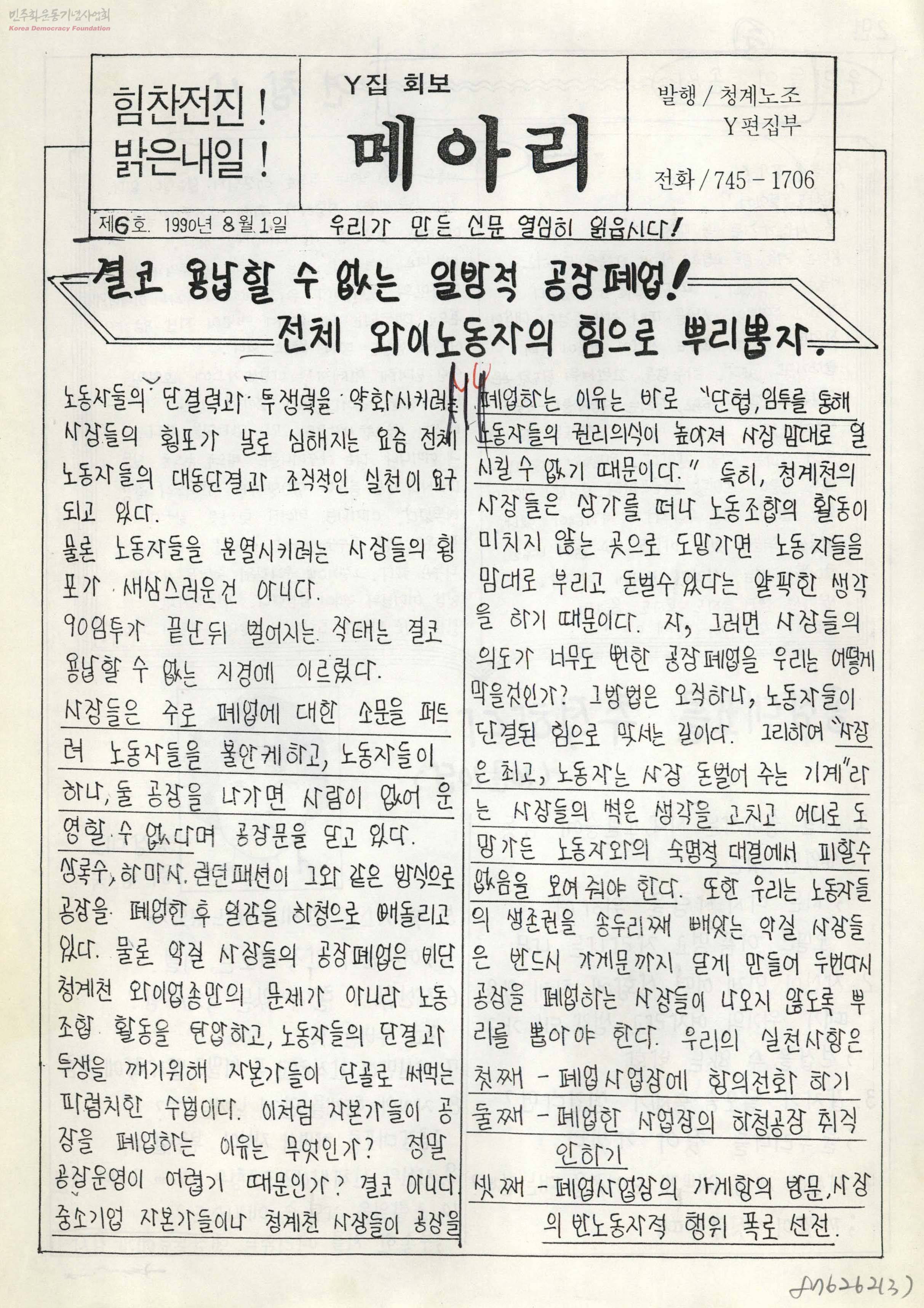 Y집 회보 메아리 제6호