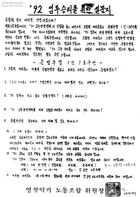 - 87노동자 대투쟁 이후 영향을 받아 노동자임금, 기본권 쟁취 문제, 해고자 문제등에 관해 권익을 지키고자 한 한국자유금융노동조합연합의 단결권 쟁취 결의대회 안내. 대회 식순이 정리되어 있음.