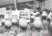 - 생산자 및 기증자가 ‘박용수’인 사진의 사용은 구매신청을 클릭하여 직접 사진 구매 신청을 하실 수 있습니다. 생산자 및 기증자가 ‘경향신문사’인 사진의 사용은 경향신문사 담당자(02-3701-1635)를 통해 구매하실 수 있습니다. 그 외의 생산자 및 기증자는 민주화운동기념사업회 사료관 담당자( h_jungwon@kdemo.or.kr / 031-361-9586 )에 문의바랍니다.