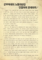 - 87년 노동자 대투쟁 이후 신장된 노동자들의 권리의식에 기반한 협성노동조합의 투쟁에 대한 안내문 -협성노동조합은 정당성을 확인하고 최저생계비를 쟁취하기 위한 규탄대회를 개최하고자 함 -직장폐쇄를 철회하고 요구조건을 수락해 줄 것을 주장함