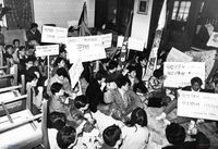 - 1988년 7월 11일 충북지역 사회단체들(도산·민중정당 충북재건추위·청주민노련·충청총련 건추위) 발행 투쟁속보 21호. 1988년 7월 청주 운수노동자 임금인상투쟁 당시, 7월 8일 시청 직원과 청주경찰서 경찰들의 부녀자 폭행 사건 및 규탄 투쟁 진행상황 관련 내용 기사 게재. 1면 88임금협정 철회와 시청의 만행 규탄 투쟁으로 나서 - 7월 8일 시청 폭행 진행상황 - 부상한 부녀자들의 병원비를 성금으로 기다립니다 - 88임금협정 철회와 산업선교회 단식농성자 지지를 위한 서명작업 현황 - 부녀자를 폭행한 시장, 청주서 수사과장을 구속하라! 88임금협정을 철회하라! 부당하게 구속된 노동자를 석방하라! - 개사곡 '노동자의 노래'(사나이로 태어나서 개사) 노동자로 태어나서 억압도 많다만 너와나 힘을 합치면 두려울게 무어냐 단결과 투쟁속에 맺어진 동지여 인간화의 길이라면 두려울 것이 무어냐 2면 아빠! 우리를 위해서라도 꼭 승리하셔야 돼요 1. 대외의존을 탈피하고 노동자의 단결과 힘으로 2. 정확한 시간과 장소를!, 강철같은 규율을! 동네방네(3) 사업주에게 묻는다