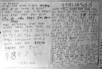 - 작업중 경찰서에 끌려가 욕설을 당하고 유인물을 나눠준일에 대해 간첩 혐의가 있는것처럼 얘기하는 형사들에게 심문을 받은일에 대한 진술 내용, 한형사가 솔직하게 말하지 않으면 고문과 폭행하겠다는 협박을 한일에 대한 진술