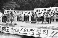 - 전두환 군사독재 정권의 민주화 운동, 학생운동, 노동운동 탄압을 비판하고 학원안정법을 철회하는것을 요구하는 내용