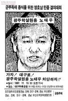 - 독재정권과 밀착하여 삼양타이어를 합병한 금호재벌 규탄, 합병시 평민당 총재 김대중씨에게 자금지원한 것을 트집잡아 양도 강요하였다는 내용 포함