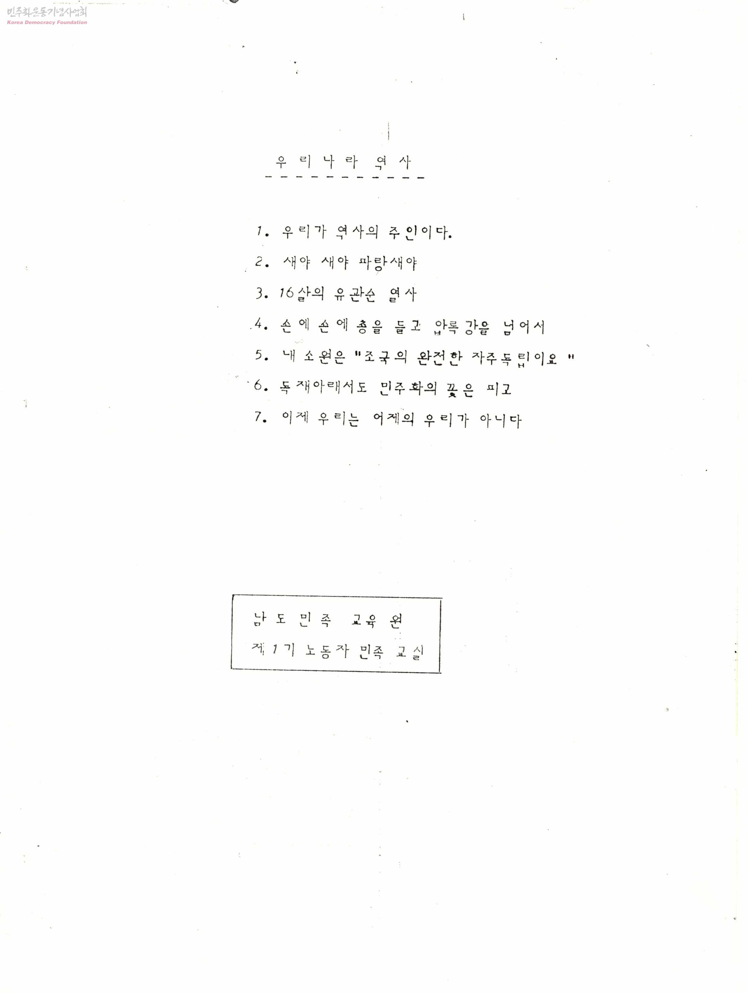 우리나라 역사 : 남도민족교육원 제1기 노동자 민족교실