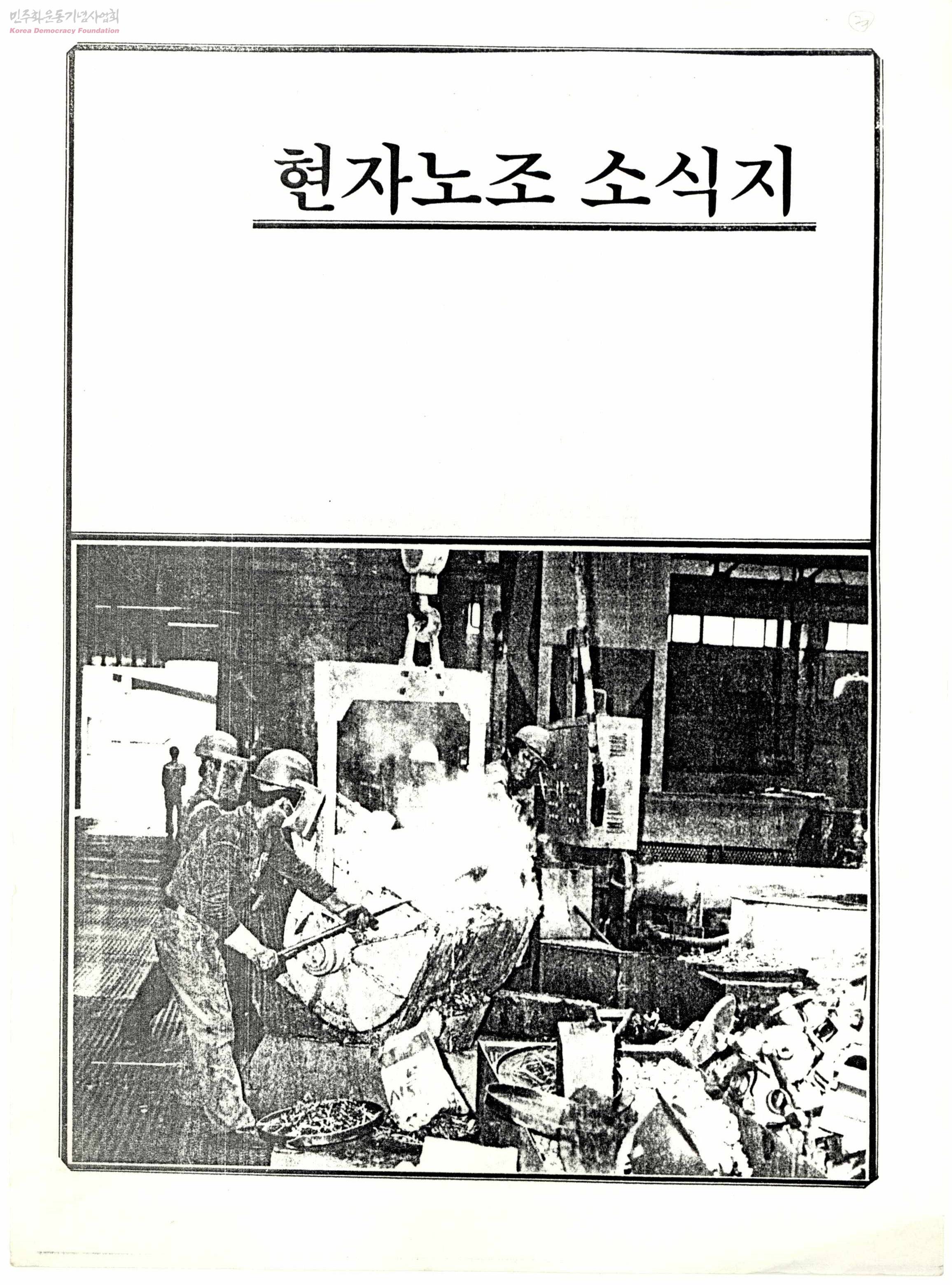 - 악조건속에서도 굳굳이 자신의 일을 충실히하는 수조부 조합원들을 표지사진으로 한 현대자동차 노동조합의 소식지로서 한국최고의 현대를 만들듯이 한국최고의 노조를 만들기 위한 노조활동의 내용을 담고있다. - 제5회 임시대의원대회 - 조합비는 어떻게 쓰여지는가? - 현자 노조 공조회 운영 - 노동법개정안