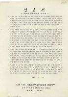 - 70년대 여성근로자 운동중 가장 끈질기고, 치열한 투쟁이었던 동일방직노조투쟁 호소문이다. 노동조합을 말살시키려는 회사는 열악한 환경속에서 노동하는 근로자들을 감시하며 성과를 독촉하고 열성 노동조합원들에 대한 탄압을 하면서 어용노조로 바꾸어 단체협약 갱신을 하였다. 이에 항거하여 단식 농성을 하였으나 강제 진압을 하였고 수백명을 퇴사시켰다. 이에 양심을 지키고 불의에 굴복하지 않고 끝까지 싸우려는 우리에게 격려를 바란다는 호소.