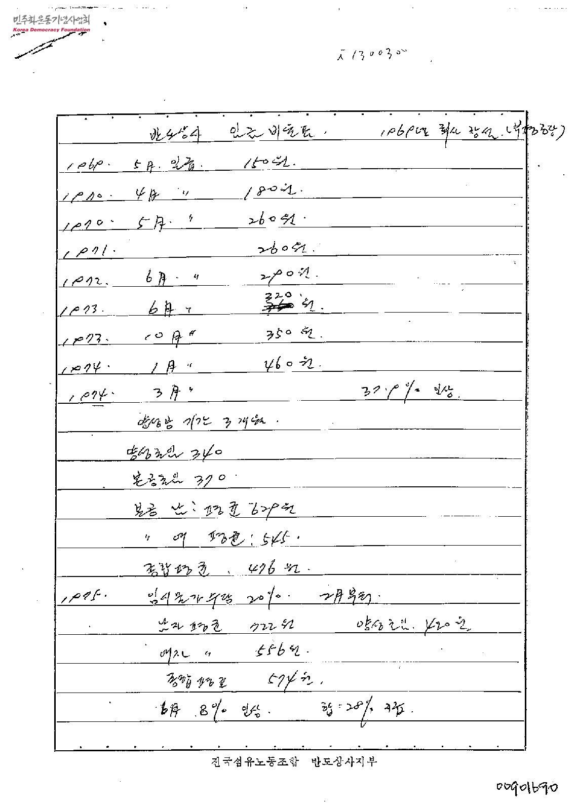 - 1969년 반도상사 창설 때부터 1978년까지 반도상사 임금 비율 내용이 자필로 메모되어 있다.