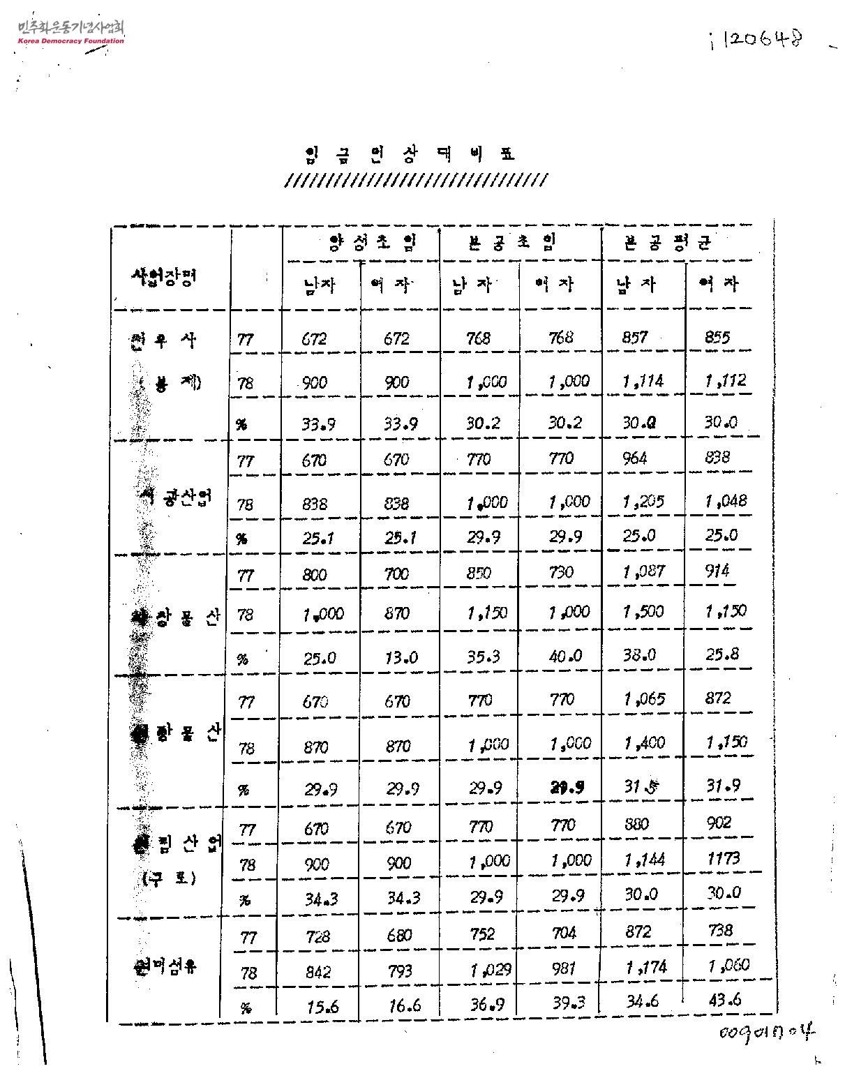 임금인상대비표