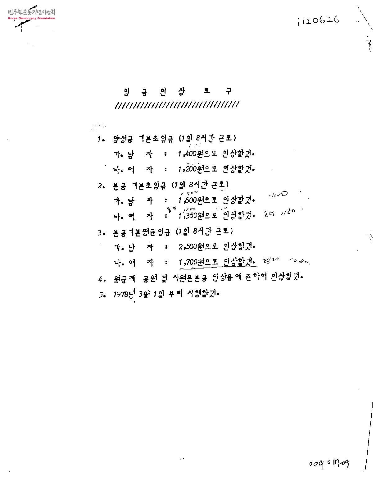 [1978년 임금인상요구 관련 자료]