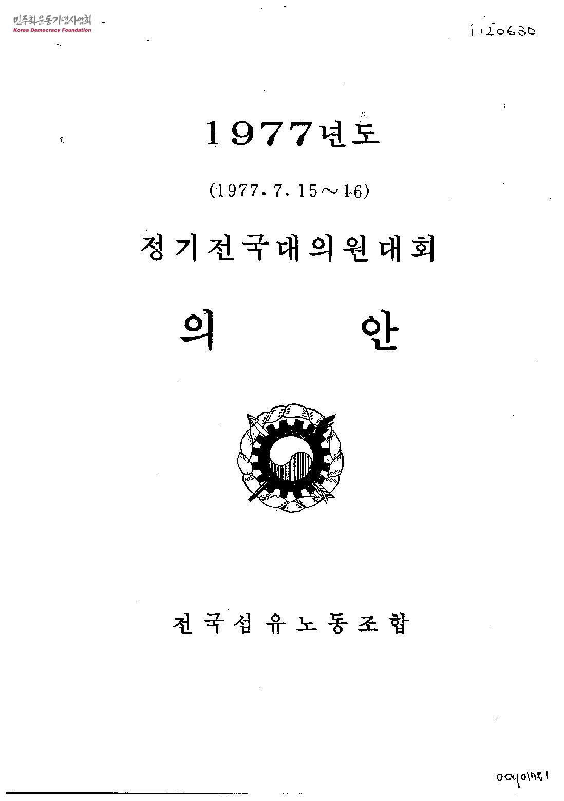 1977년도 정기전국대의원대회 의안