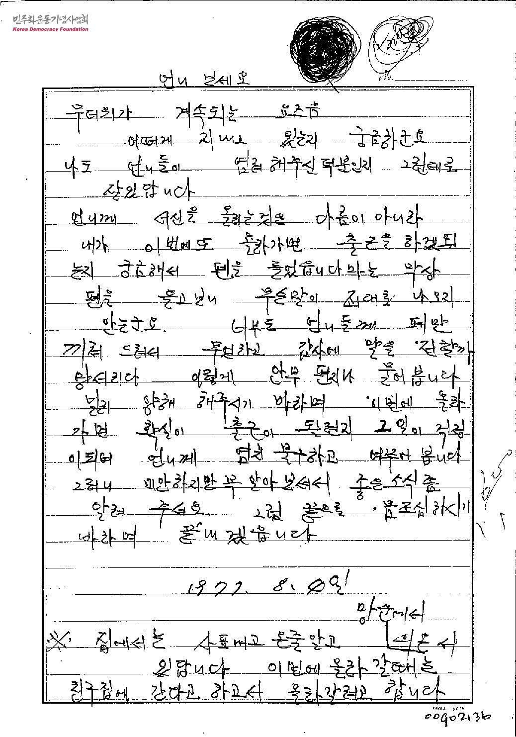 [반도상사 근로자가 장현자에게 보낸 자필 편지]