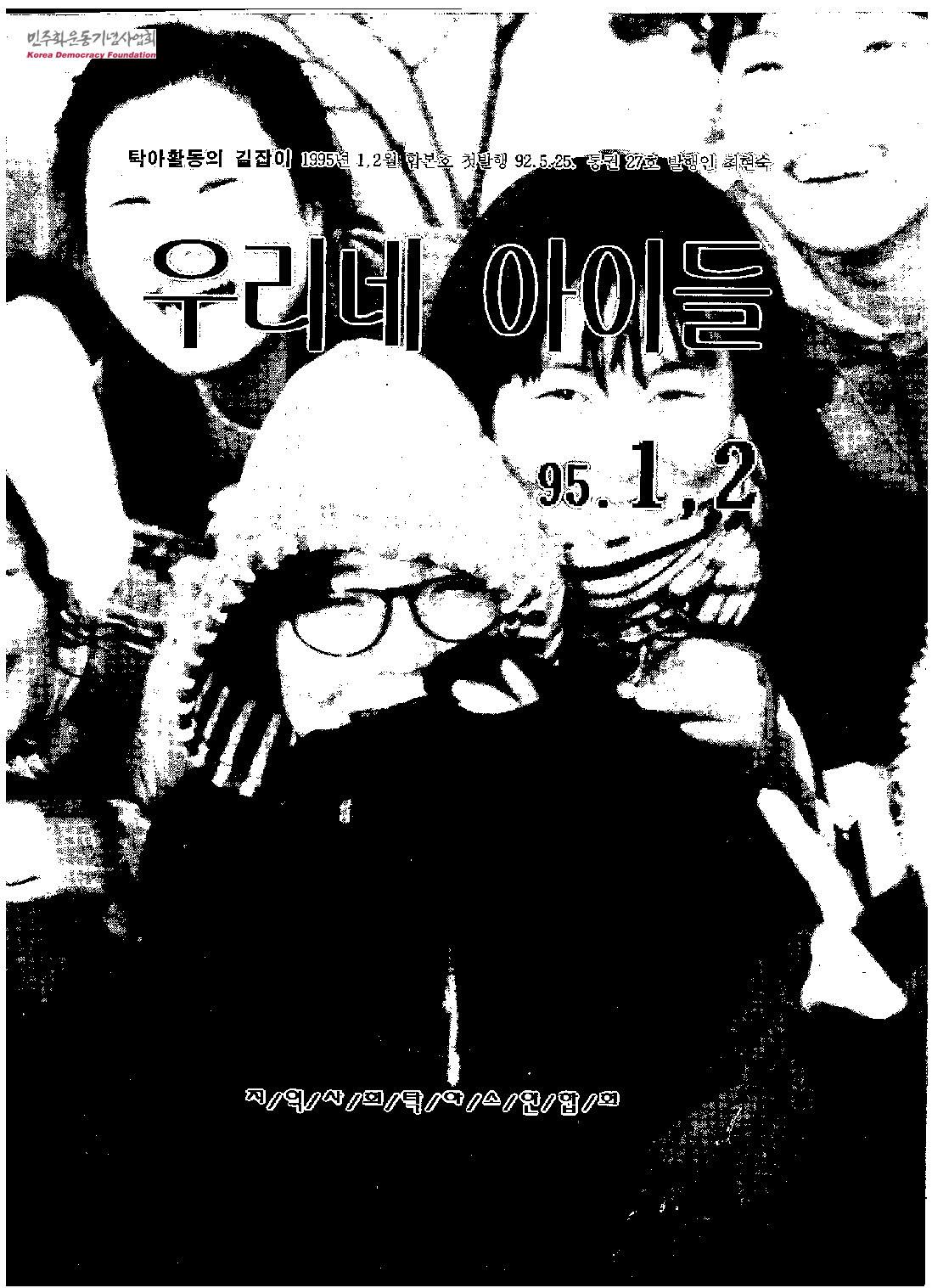 - 목차 일하며 생각하며- 새로운 10년의 출발점에 서서 신년특집- 올해년 새해, 지탁연에 바란다 기획- 영아 이유식 식단(2) 지상강연1- 어린이와 그림책 선생님이 할 일 지상강연2- '지역자치' 학습노트 특집- 1995년도 한국여성단체연합의 사업방향과 계획 새날을 여는 사람들- 새로운 다짐을 하고 싶어요 좋은 그림책 소개 건강하게 삽시다- 소아예방접종과 관련되어 알아두어야 할 사항 시사말뚝이- 우리의 존재는 가난하지 않습니다 글마당- 탁아소별곡 우리들의 목소리 현장에서 날아온 편지 탁아계 풍향 소식과 소식 벼룩시장 편집부에서