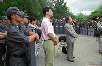 경찰 진압장비로 무장한 서대협 학생들 모습. 연세대