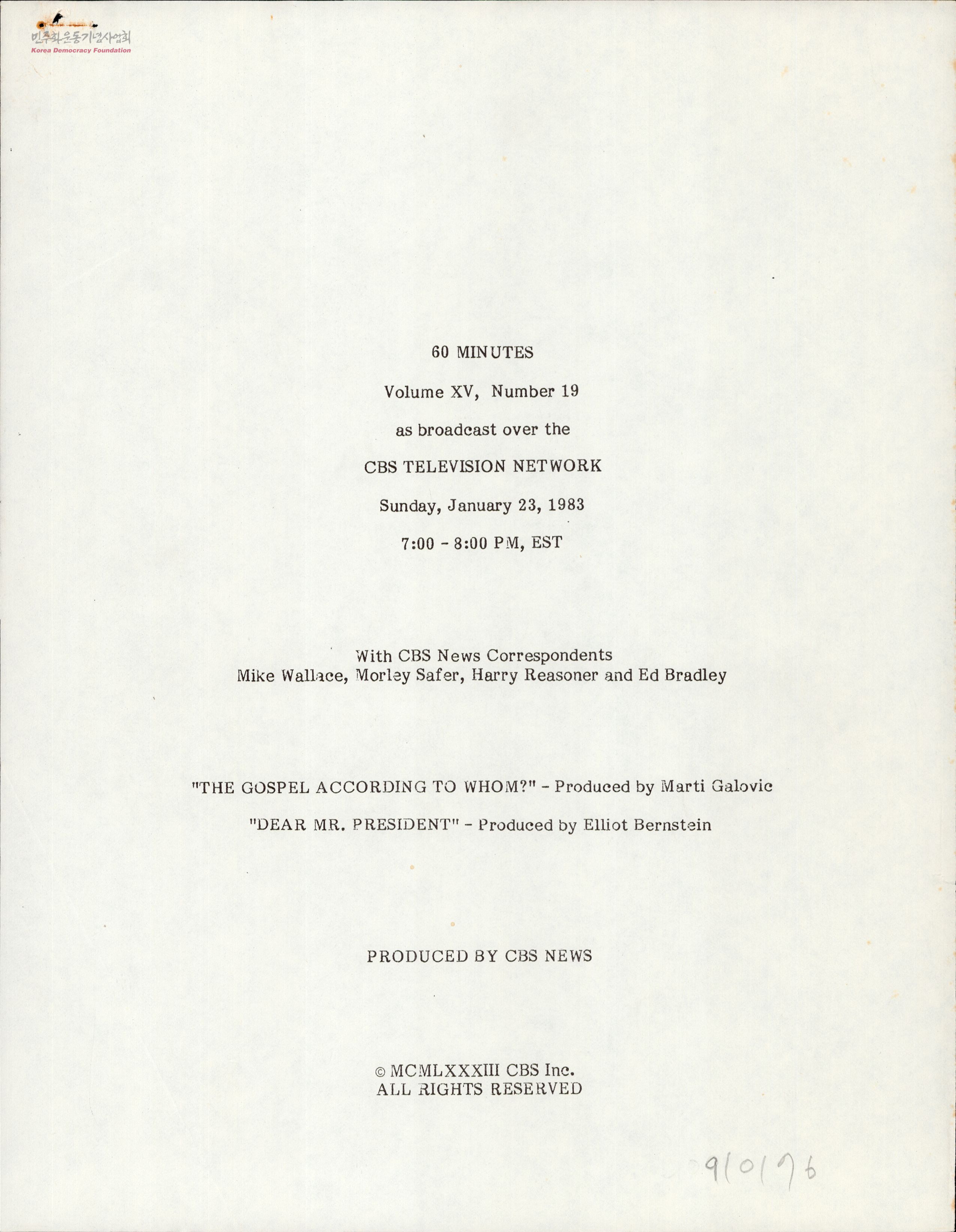 The Gospel According to Whom? - Produced by Marti Galovic, Dear Mr. President - Produced by Elliot Bernstein
