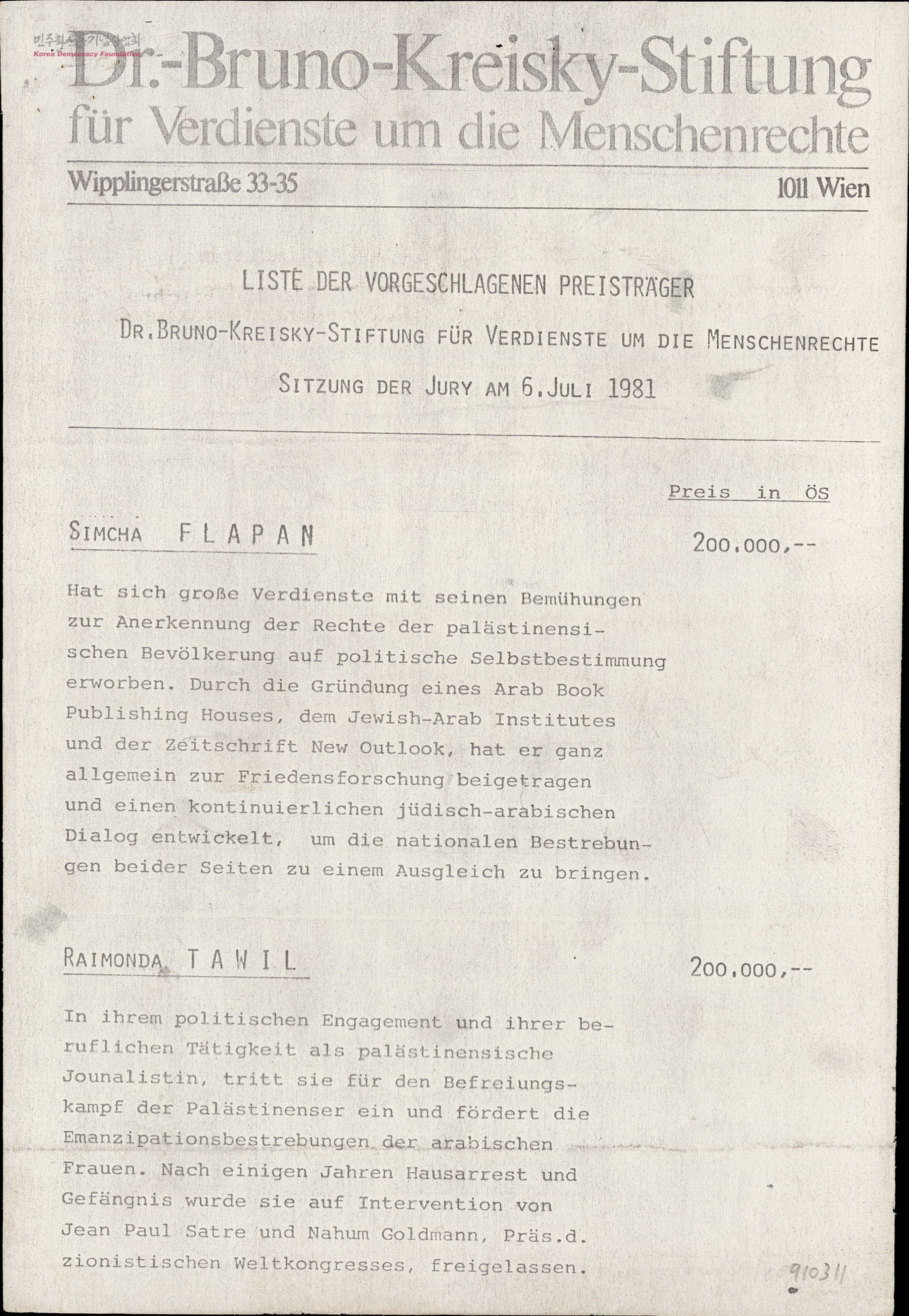 - Dr.-Bruno-Kreisky-Stiftung für Verdienste um die Menschenrechte