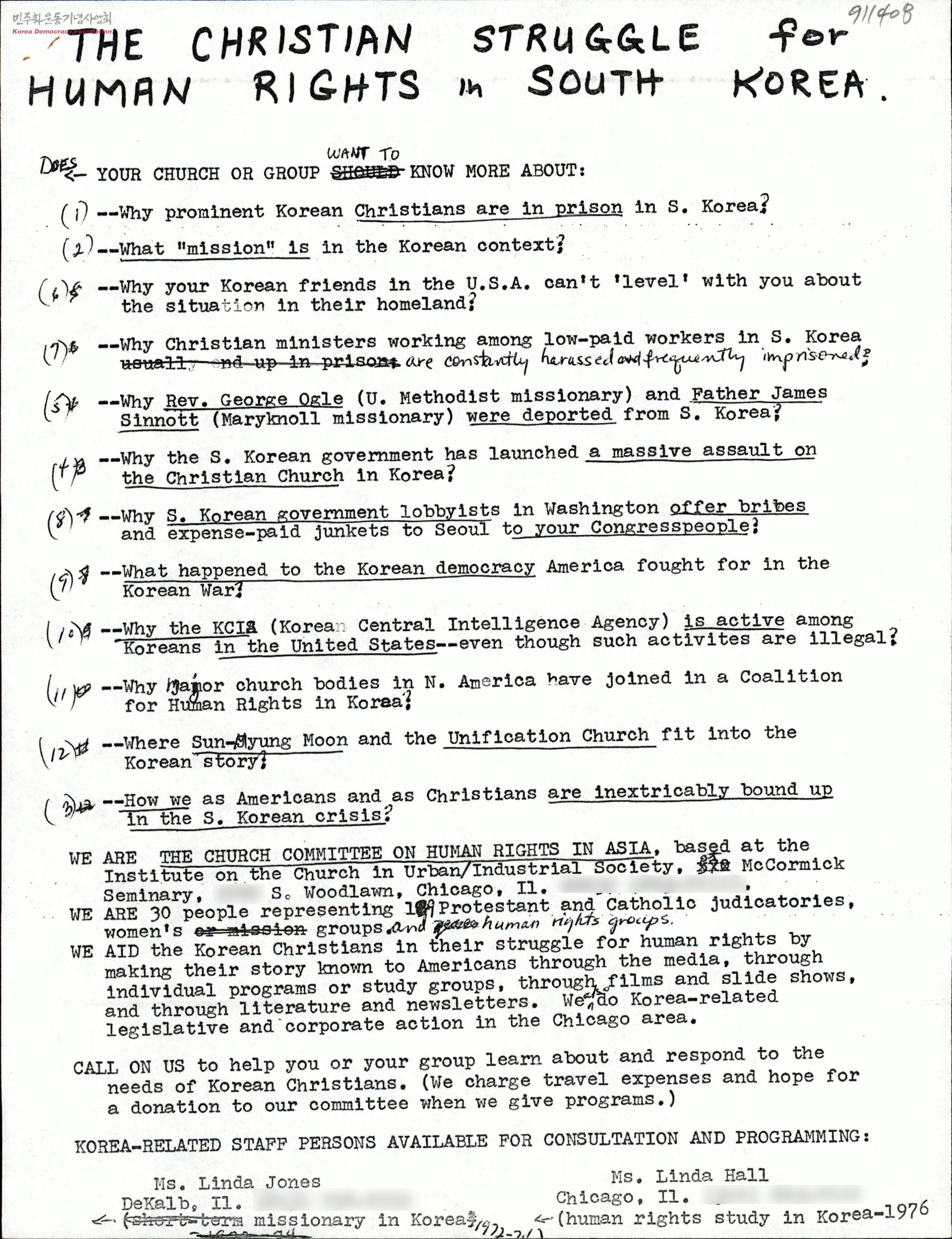 - 한국민주화 관련 문제는 무엇이 있을까, 질문 식으로 관심을 환기하는 시민행동 촉구 전단