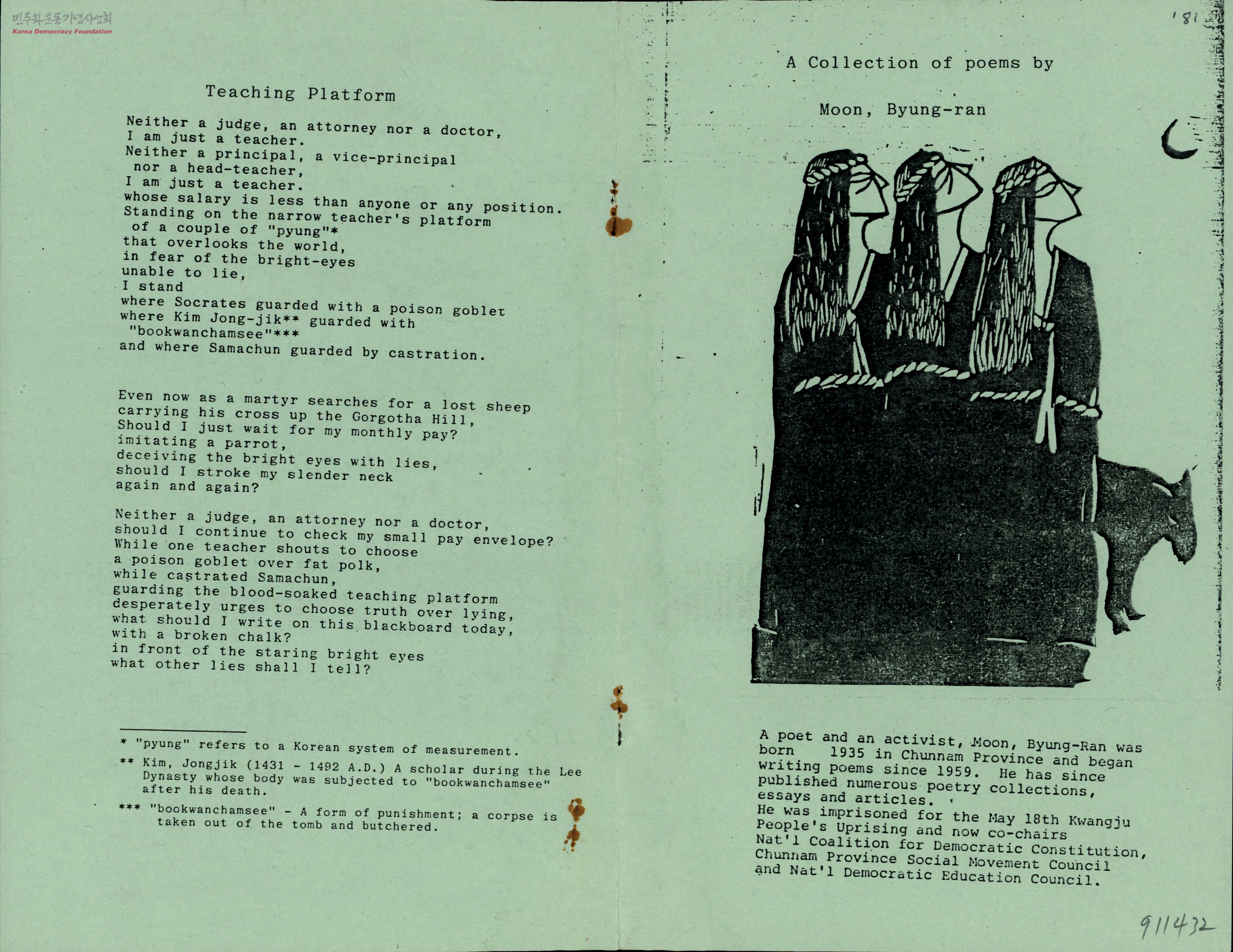 - 한국의 저항시인 문병란의 작품과 설명