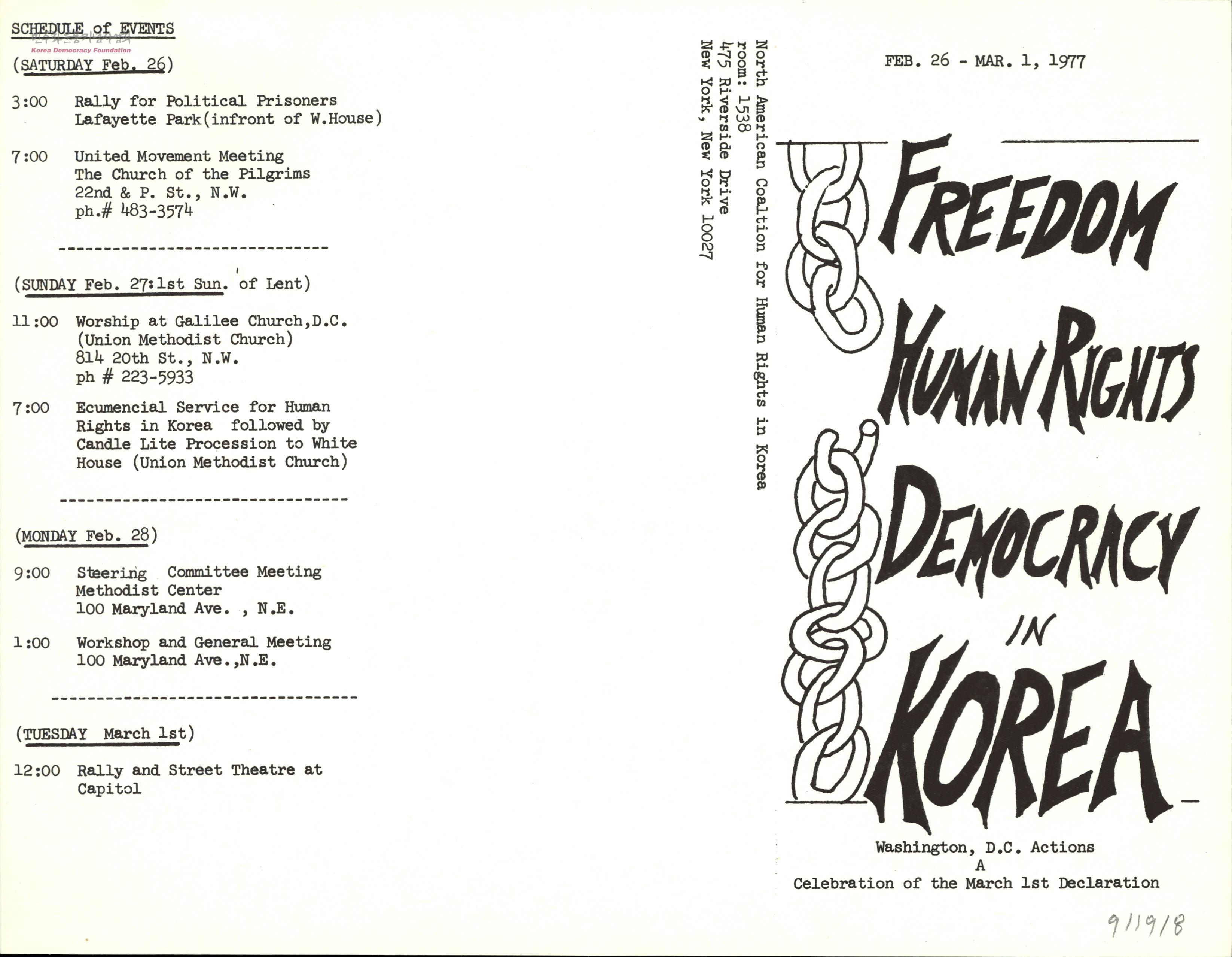 - 3.1 민주구국선언 1주년 기념행사를 위한 NACHRK와 에큐메니칼 지원단체의 리플릿과 행사일정 자료