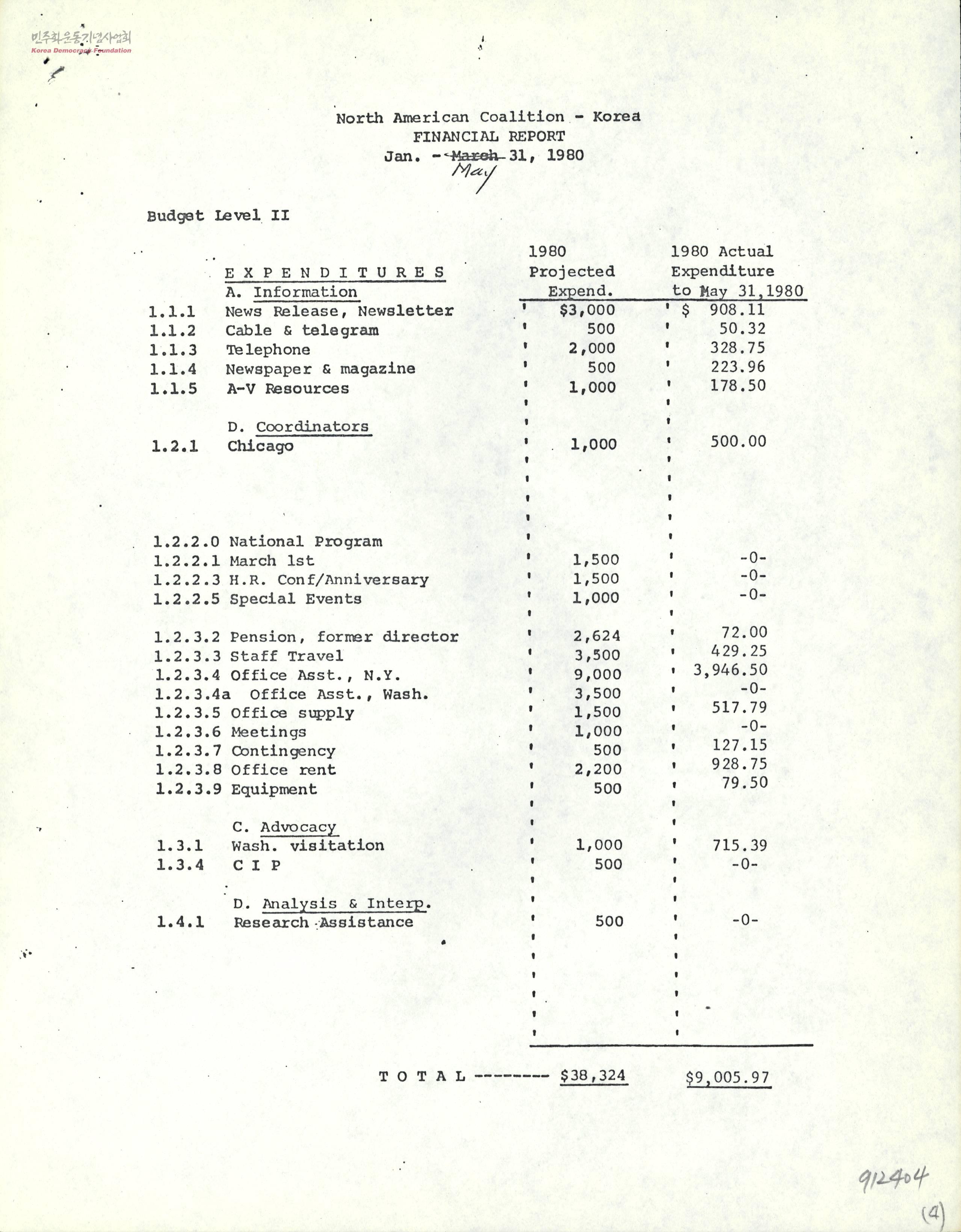 - 1980년 1월부터 5월 31일까지 NACHRK의 재정 보고서와 수정 예산 제안서