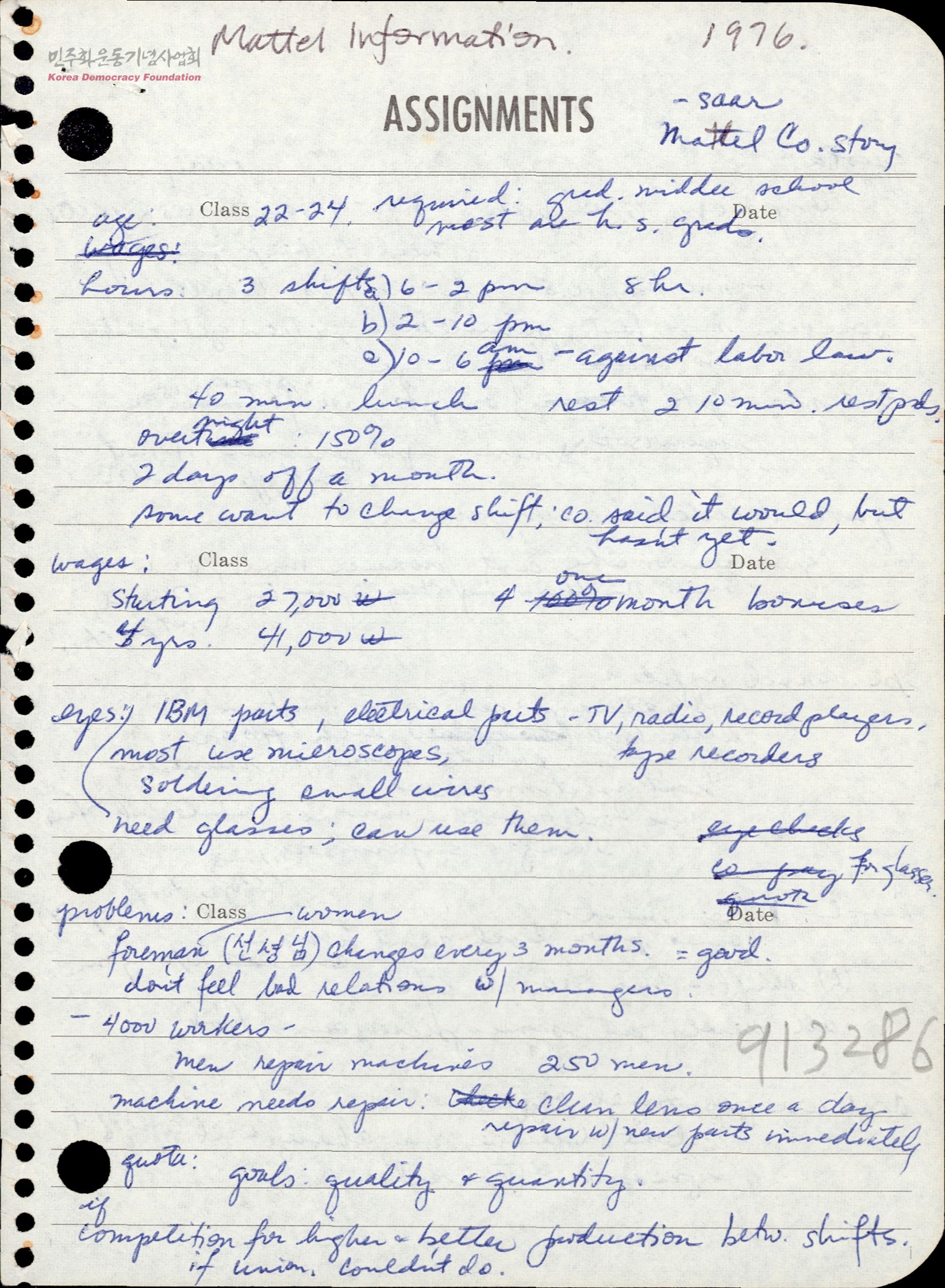 - 노동자 급여, 노동시간 등을 기록한 메모