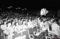제4기 전대협출범식에서 "전대협이여 영원하라!"는 현수막을 펼치고 있는 몸짓패 학생들
