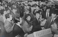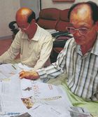 - 민통련 대변인 김정환이 집행유예로 출감했다.(앞 줄 임채정, 김정환, 이호철, 박태순)