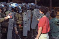 - 기독교교회협의회 인권위원회 사무실에서 농성 중인 시국사건 구속자 가족들을 방문한 자유실천문인협의회 회원들