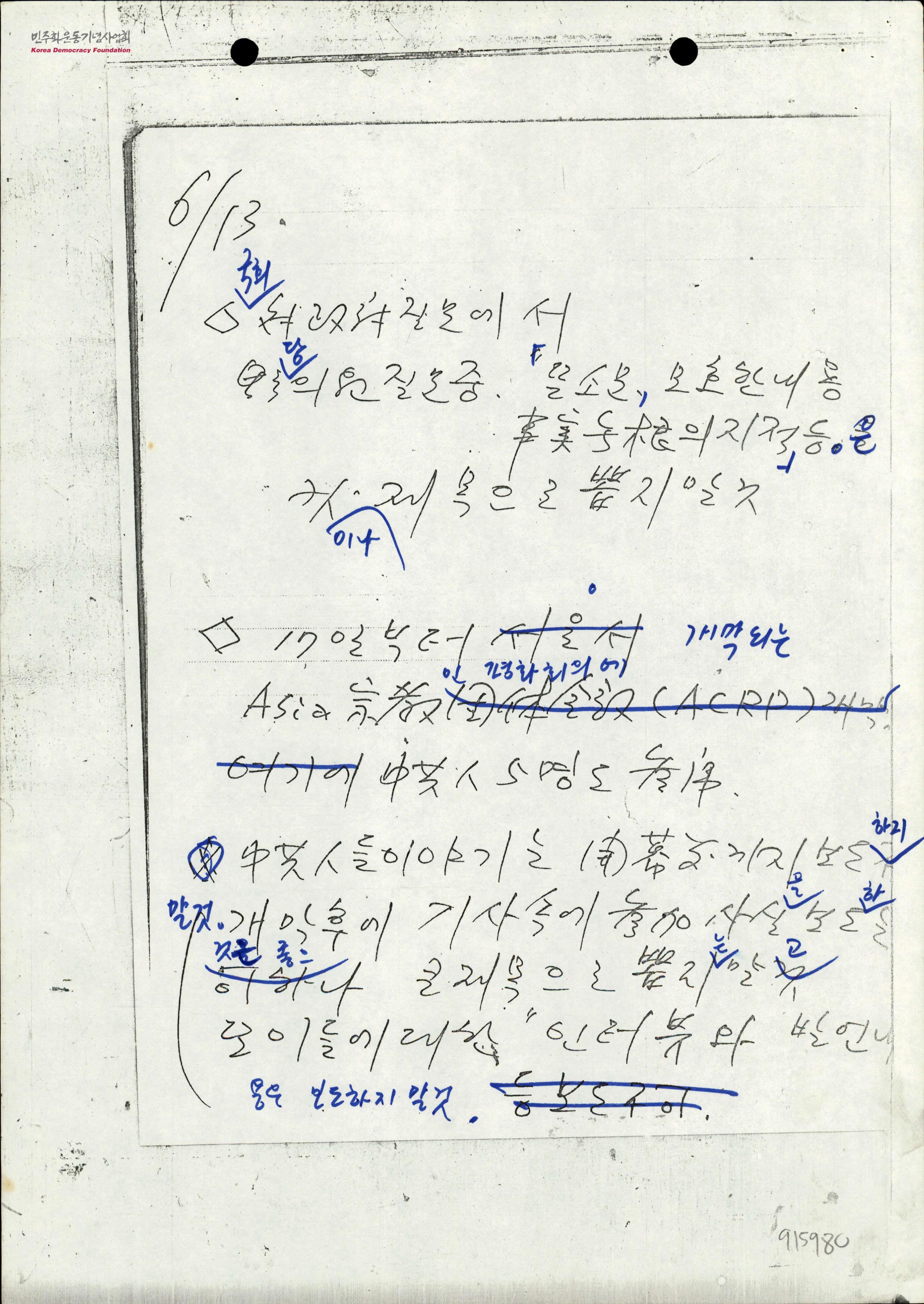 - 국회 대정부 질문 및 아시아 종교인 평화회의 에 참석하는 중국인(중공인)에 관한 보도지침