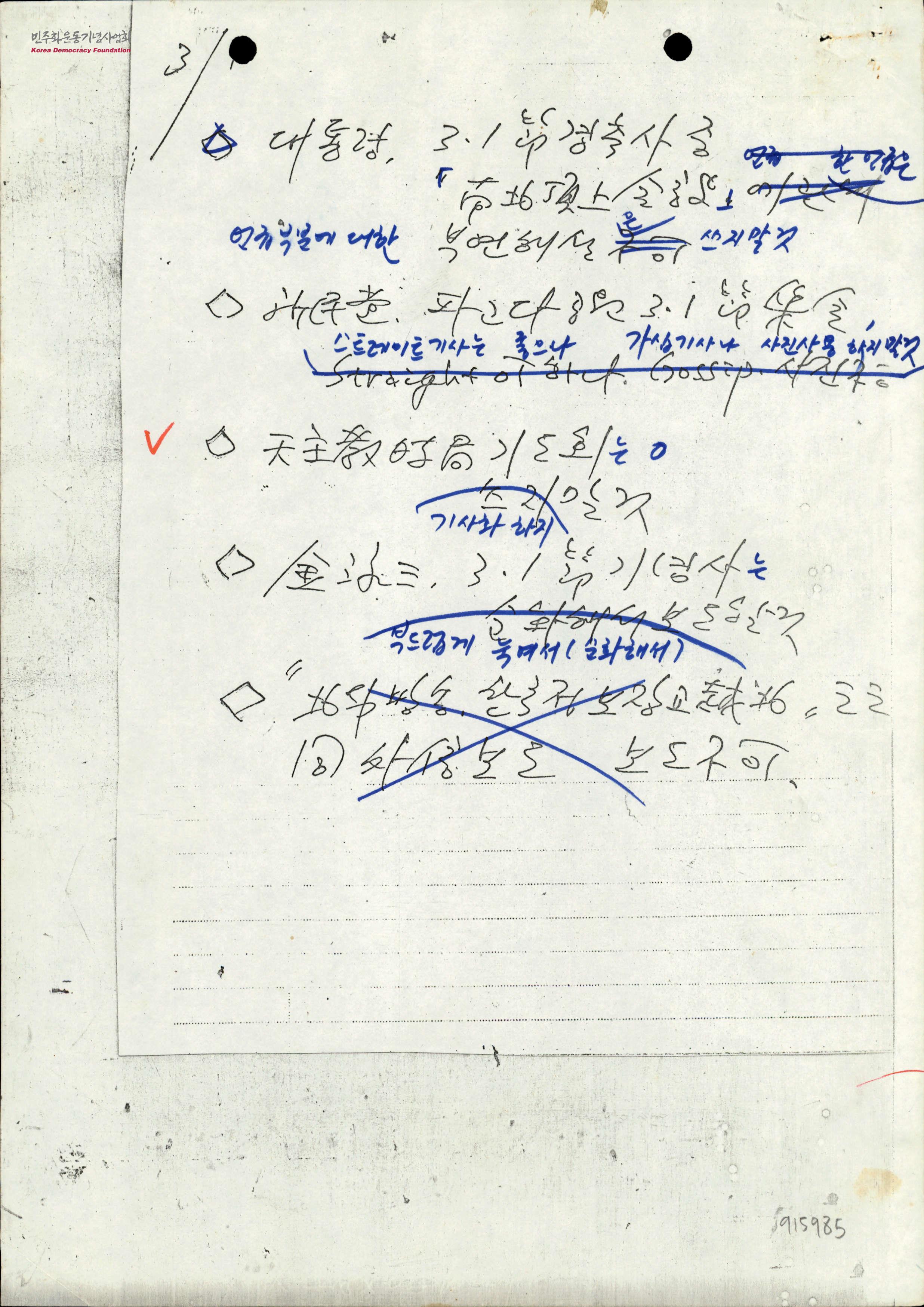 - 대통령 3.1경축사 및 신민당의 파고다공원 3.1절 집회, 천주교 시국기도회, 김영삼 3.1절기념사 관련 보도지침