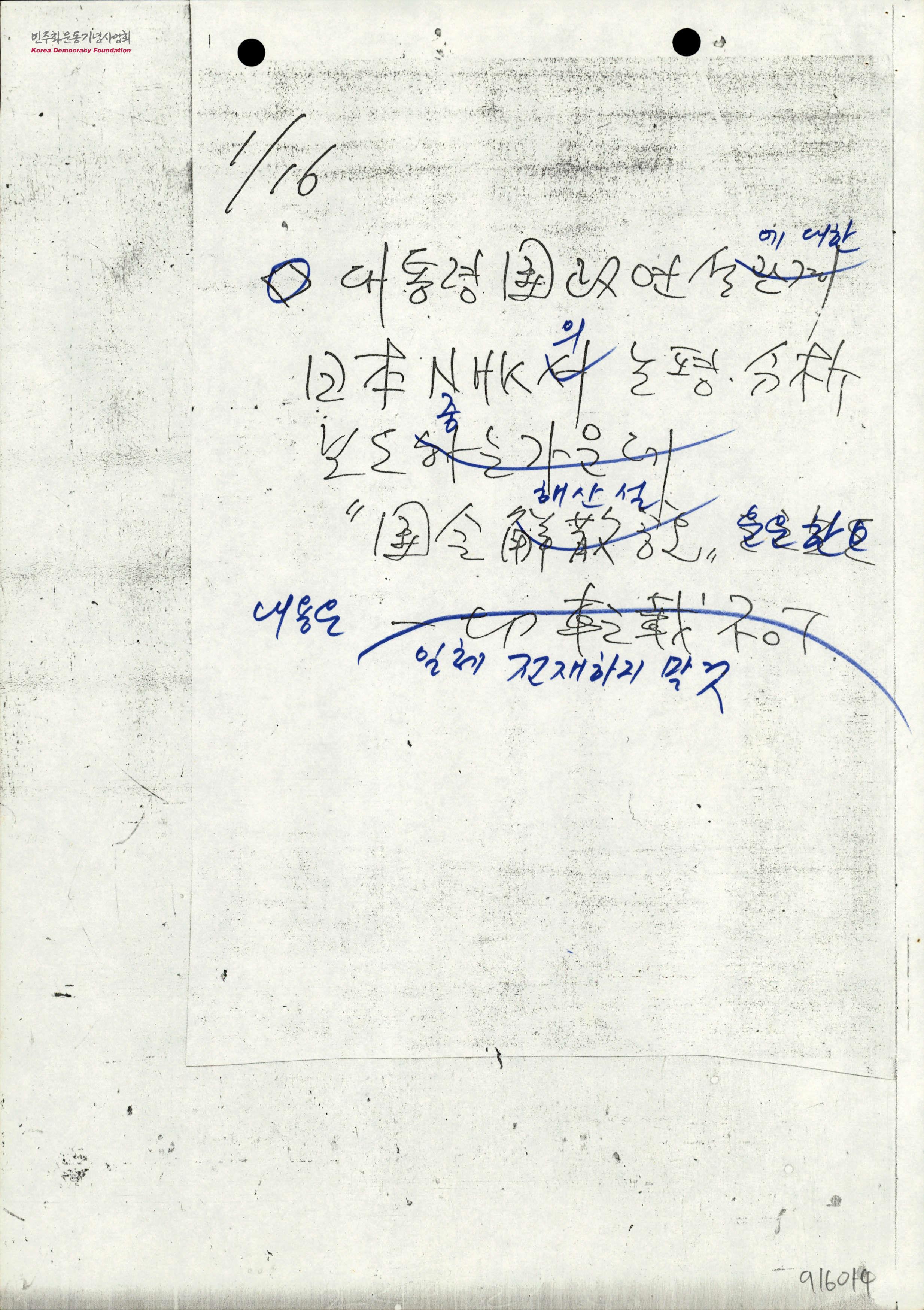 - 대통령 국정연설에 대한 일본 NHK의 논평, 분석보도중 『국회해산설』운운한 내용은 일체 기사화 하지 말 것을 지시하는 보도지침