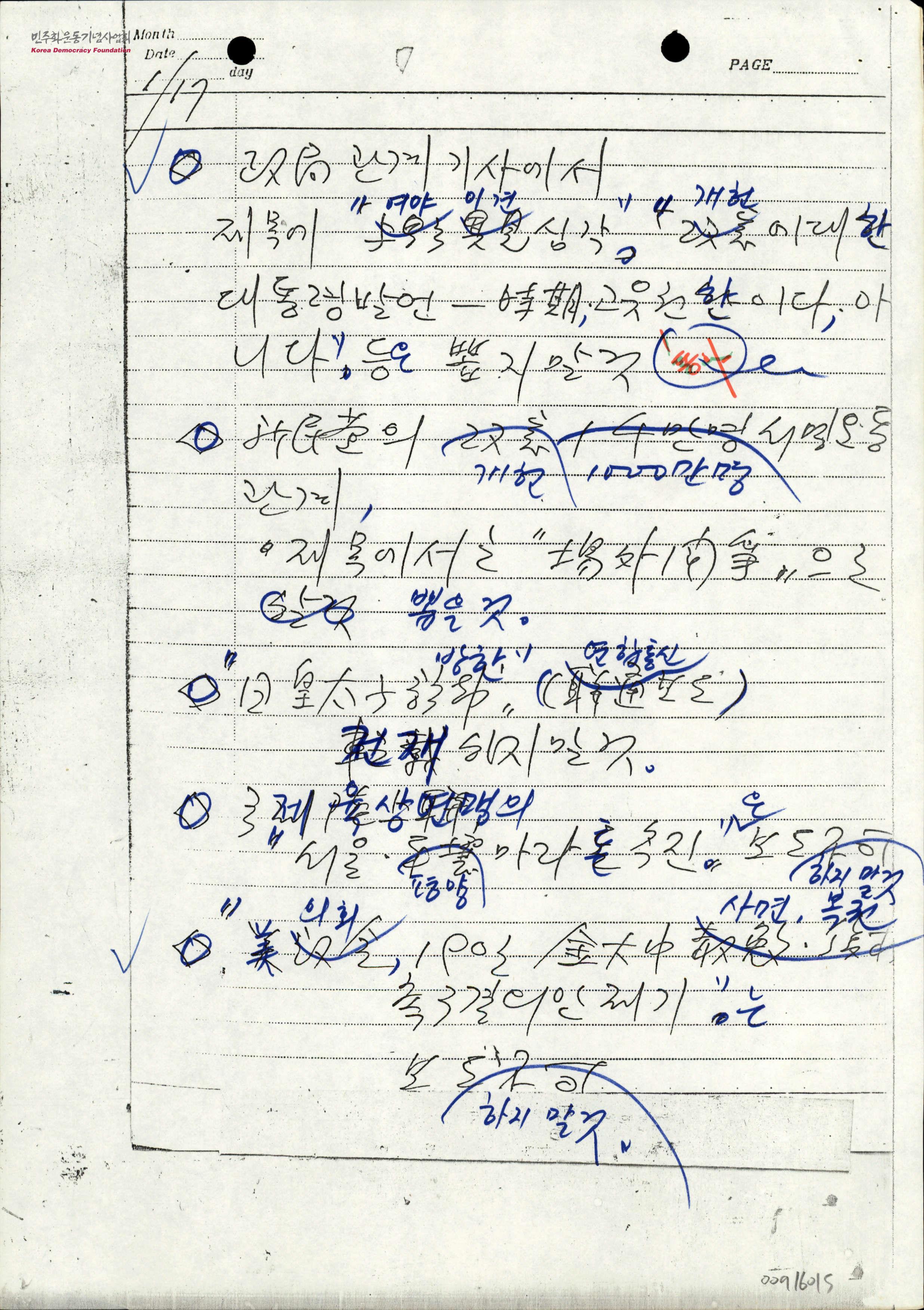 - 정국관계기사, 개헌1,000만명 서명운동관계, 일본 황태자 방한, 서울~평양 마라톤 추진, 미국의회의 19일 김대중 사명·복권 촉구 결의안 제기 보도에 관한 보도지침